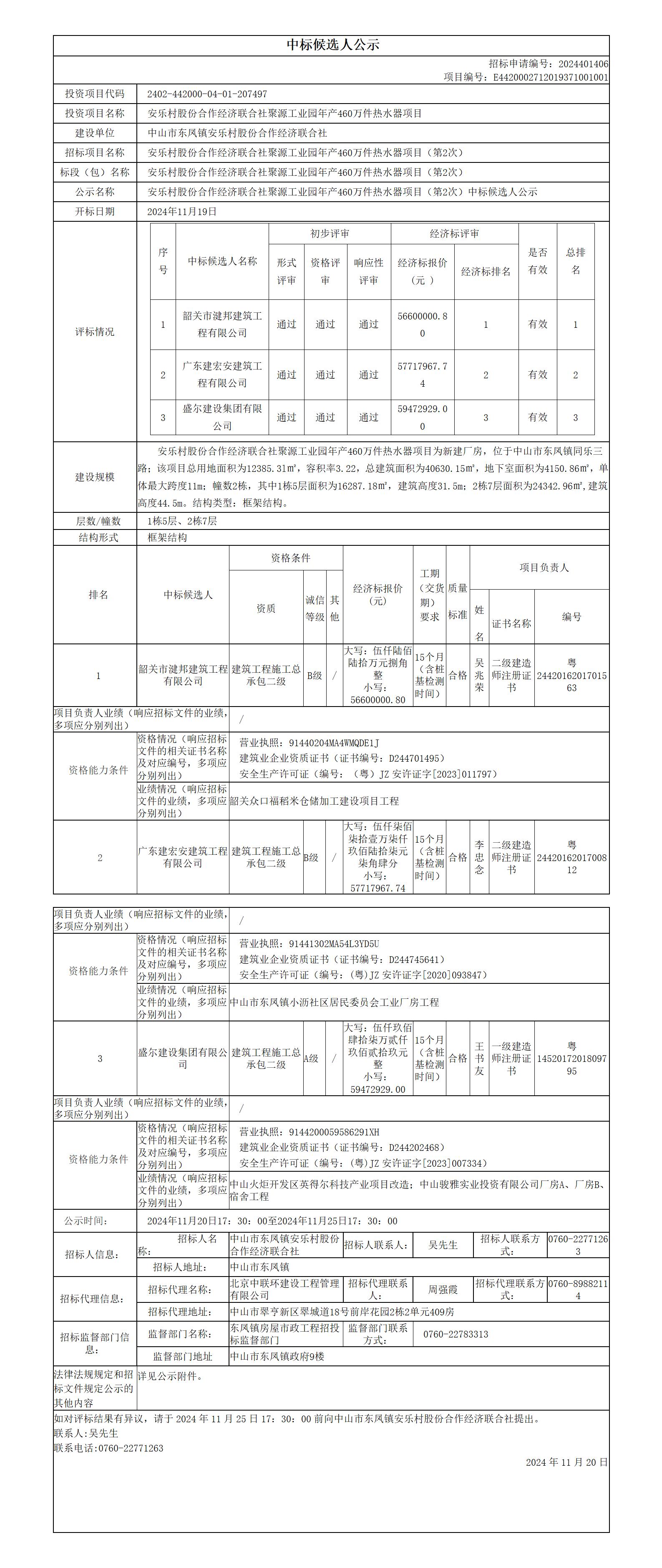 安樂村股份合作經濟聯合社聚源工業園年產460萬件熱水器項目_中標候選人公示